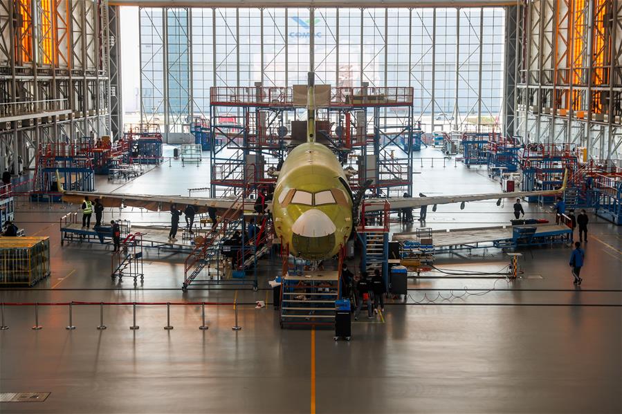 3月6日,工人在中国商飞上海飞机制造有限公司的生产车间内作业。 当日,记者探访了中国商飞上海飞机制造有限公司。中国商飞公司一手抓疫情防控,一手抓复工复产复飞,扎实推进型号研制与生产运营工作。 新华社记者 丁汀 摄
