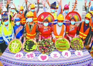 在南宁市重点工程那平江污水处理厂项目工地,施工方精心制作了五色糯米饭,让来自五湖四海的工人们共庆“壮族三月三”。广西新闻网-广西日报记者 周军/摄