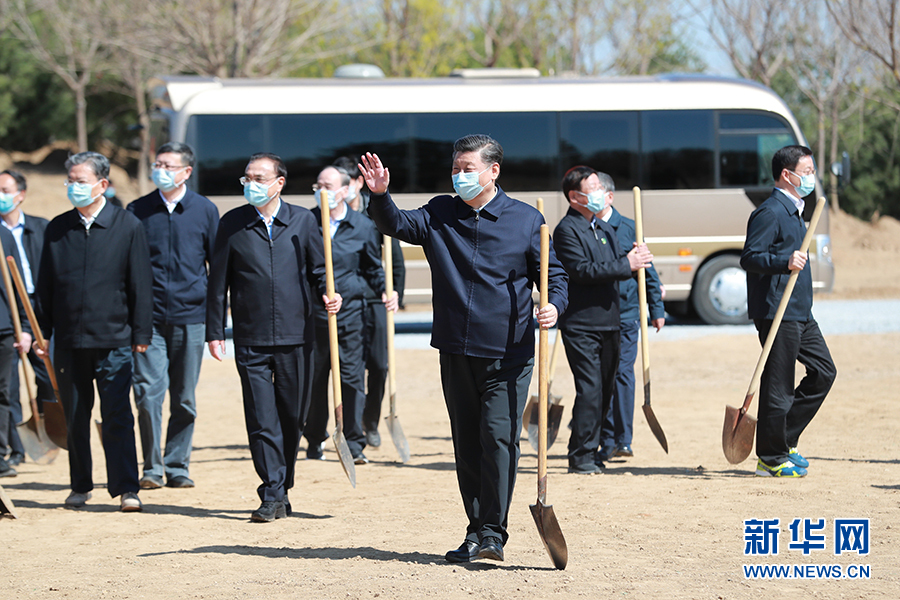 4月3日,党和国家领导人习近平、李克强、栗战书、汪洋、王沪宁、赵乐际、韩正、王岐山等来到北京市大兴区旧宫镇参加首都义务植树活动。 新华社记者 庞兴雷 摄