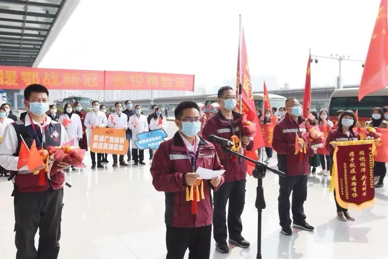 最后返回的6名队员 于2月23日出征 他们分别是 ↓↓↓ 自治区疾病预防控制中心陆皓泉、魏超、宫晨,防城港市疾病预防控制中心李锋华,梧州市疾病预防控制中心陆茂琪和玉林市疾病预防控制中心李英梅。