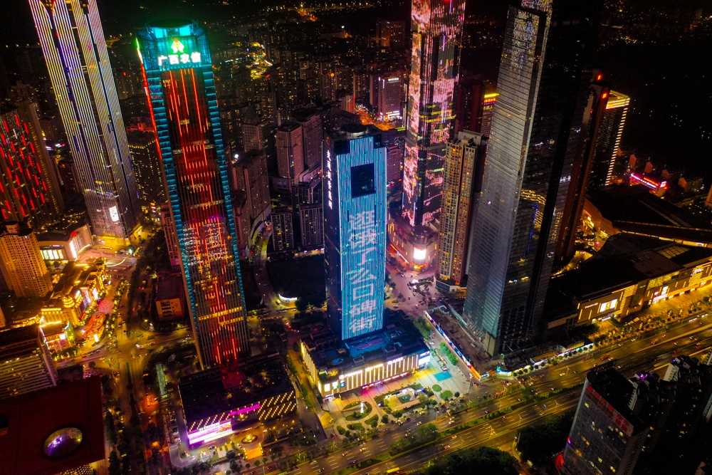 “e口吃遍南宁”“逛饿了么口碑街”等灯光秀活动,持续点亮邕城最美夜景。