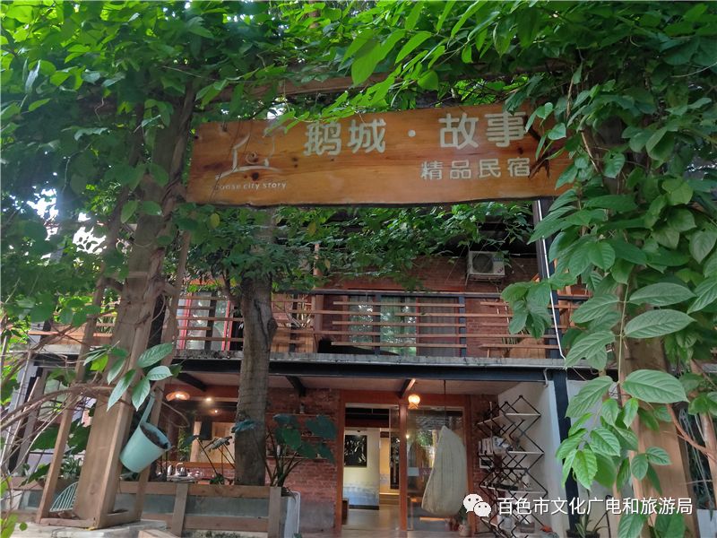 点击查看各市特色民宿:南宁、柳州、桂林、北海、防城港、钦州、贵港、玉林、百色、贺州、河池、来宾、崇左、梧州 初到一个城市游玩 总免不了要住宿 住腻了千篇一律的酒店 偶尔也要到特色民宿来找找乐趣 鹅城·故事 民宿保留了上世纪六十年代的红砖墙,由老厂房改造而成,古朴且自然。有两层客房,室内的挂画及客房各具特色,使其不失时尚与个性。 民宿配备18间客房。分套房、单人房、三人房三种类型,保证了住客的个性需求。 拥有上下层超大室内停车场,附近几百米距离便是百色市著名的红色旅游景点:百色起义纪念碑、粤东会馆等,交通便利。 地址:百色市右江区城东路15号(鹅城文创园)