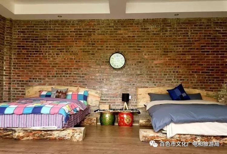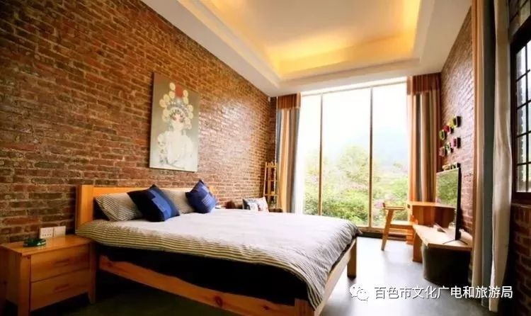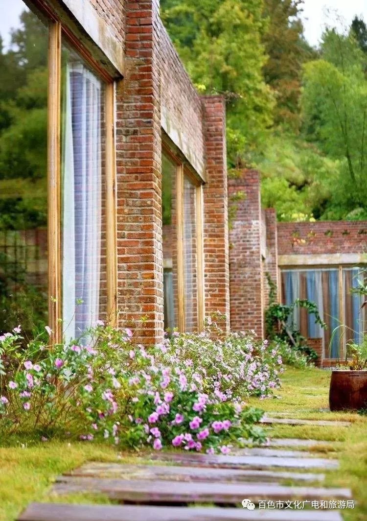 谷龙民宿 谷龙民宿位于德保县谷隆村,距离县城只需几分钟车程。民宿是主体为红砖的三栋建筑,园艺美得不要不要的,房间都以落地窗为主,透过落地窗能看到远处青山,从客厅到饭厅的走道上,是用碎石子+石磨板的有趣组合。 一楼配有茶室和酒吧,可以坐在窗边,偷个懒,看看书听听音乐休憩一下。 楼宇之间小桥流水,清新的花草和谐的和建筑融为一体,还有适合宝贝们戏水的小泳池,小花园里用绳子吊挂的各种酒瓶子,一晚上就在这里把酒言欢必能十分尽兴。 如果不喜热闹,夜间到楼顶露台泡一壶茶,听那乡野间的虫吟鸟叫,观星赏月虚度那一晚的好时光。 客房内墙做成比较古朴的红砖,加上细节做得很到位的内饰,让房间呈现出更原生态的田园风。 地址:德保县谷隆村