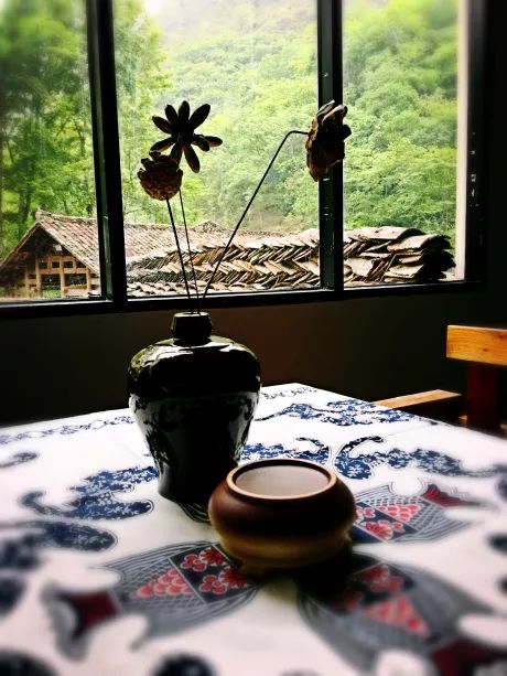牛坪馨兰园 馨兰园不大的门前放着几盘绿植,木条勾勒着大门的轮廓,配上“馨兰园”三个黑字,有没有给你一种“斯是陋室,惟吾德馨”的感觉呢? 从大门一进去便看到白净的墙上悬挂着许多的画框,画中满是民族风的景象,给人一种画中画的美妙错觉。 庭院的地面铺满了古石,半人高的竹子围成一圈篱笆,两个黄木条与玻璃建成的小包厢可以将外面的景色尽收眼底。主楼是素白的墙,镶嵌上深色的玻璃和古藤色的木框配上有些许青苔的瓦。朴素与现代的结合给人耳目一新的视觉感受。 就餐区是木式的餐桌,亮点在于每一张餐桌上都放置着一张非常让人惊艳的民族风刺绣桌布,美丽得就像一个艺术品,让你不忍心去玷污它。 民宿周围碧湖围绕、绿树成林,会让人情不自禁地贪婪的呼吸着新鲜空气,换来大脑的清爽与身心的轻盈。民宿周围有湖也有流水,有静也有动,清澈的河流在落差处哗啦作响,看着水中的鱼儿自在地畅游,所谓的小桥流水人家说的就是这般吧。 地址:乐业县同乐镇央林村牛坪景区内