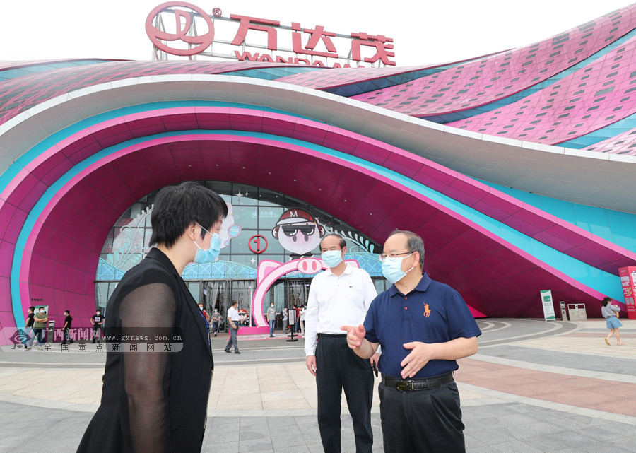鹿心社在南宁万达茂,实地检查常态化疫情防控工作,与商家负责人深入交流。记者 黄克/摄