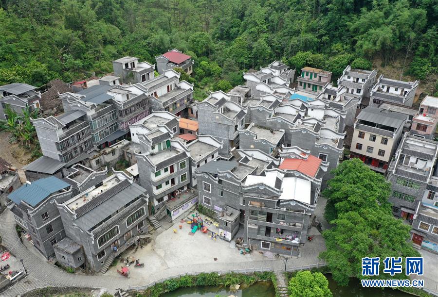 这是广西环江毛南族自治县下南乡中南村南昌屯民居(5月13日摄,无人机照片)。 毛南族是我国28个人口较少民族之一,广西壮族自治区环江县是国家扶贫开发工作重点县,也是全国唯一的毛南族自治县,全县有毛南族6.45万人,占全国毛南族总人口的约70%。2019年底,环江县贫困发生率降至1.48%。2020年5月,环江县退出贫困县序列。综合全国毛南族脱贫情况,毛南族已实现整族脱贫。 新华社记者 陆波岸 摄