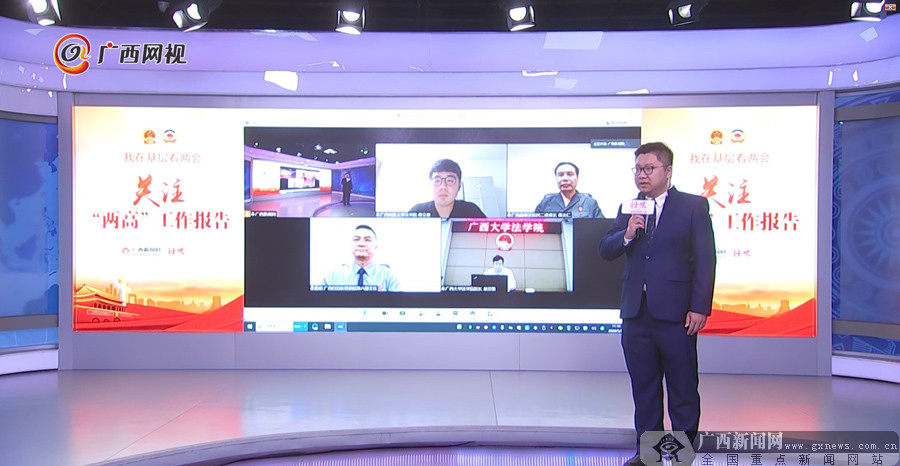 广西新闻网《我在基层看两会》第六期,关注“两高”工作报告。 广西新闻网南宁5月28日讯(全媒体报道组)5月25日,十三届全国人大三次会议第二次全体会议听取和审议了最高人民法院工作报告和最高人民检察院工作报告。“两高”工作报告中,涉疫犯罪、扫黑除恶、脱贫攻坚、营商环境、保护未成年人等关键词,引发热议。全面建成小康社会,离不开安全稳定的社会环境、公平公正的法治环境。“两高”工作报告中一个个闪亮的字眼,充分彰显了“两高”以法治护航全面小康的坚强决心,既有力度,又有温度。5月28日,广西新闻网推出《我在基层看两会》第六期,在“云”访谈间连线广西司法界奋战在一线的基层代表,以及法学界专家、法学专业在读研究生,共同聚焦“两高”工作报告。