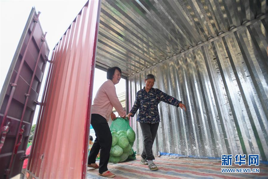 6月4日,在湘潭市雨湖区鹤岭镇龙安村,湘潭市仙女蔬菜产销专业合作社的农户将蔬菜装车,准备运往商超。 近年来,湖南省湘潭市雨湖区着力推进蔬菜产业发展,按照“农业企业/合作社+农户”的蔬菜产业化模式经营,通过安排贫困户就业、收购农副产品、技术指导等方式,有力促进农民脱贫增收。目前,湘潭市雨湖区的蔬菜产业扶贫项目有7个,带动贫困户户均增收3000元以上,受益贫困户4487人。 新华社记者 陈泽国 摄