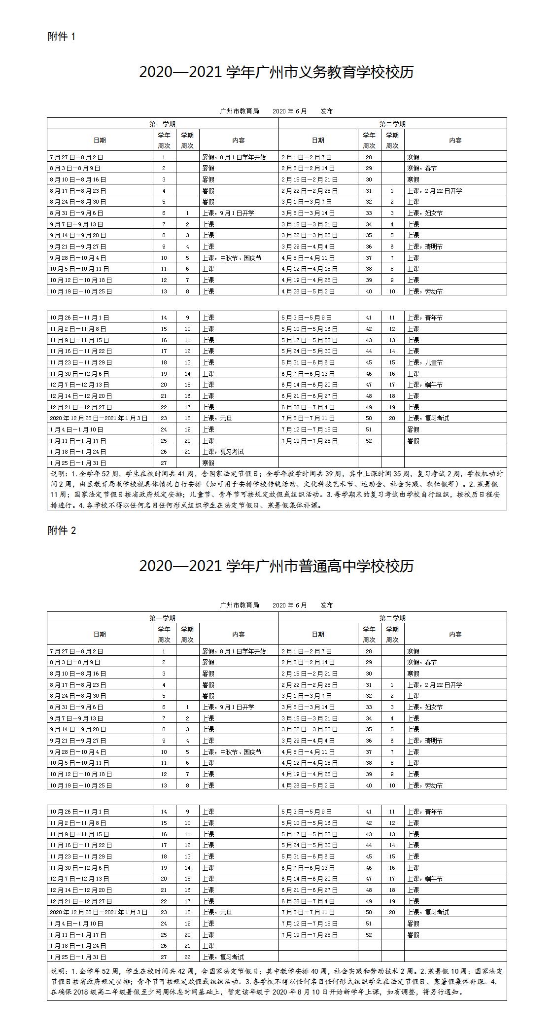 央广网广州6月9日消息(记者郑澍)6月8日,广州市教育局最新公布了《2020—2021学年广州市义务教育学校校历》。根据校历安排,全市小学、初中、高中放暑假从2020年7月27日开始,8月31日结束,共36天。9月1日正式开学上课。其中,广州市教育局特别说明,在确保2018级高二年级暑假至少两周休息时间基础上,暂定该年级于2020年8月10日开始新学年上课,如有调整,将另行通知。