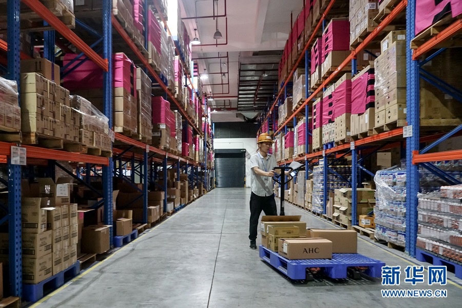 重庆保税港区的保税仓内,一位工作人员正根据货单寻找相关商品。今年“6·18”,重庆保税港区预计出货量将达到73.4万单,同比增长约10.7%。新华网 王龙博 摄