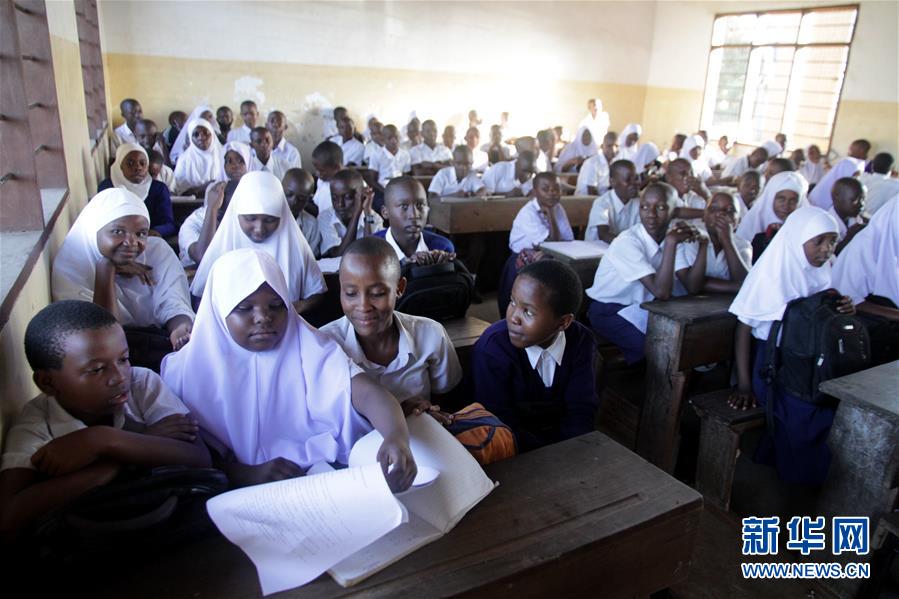 6月29日,学生们在坦桑尼亚达累斯萨拉姆一所小学上课。 当日,坦桑尼亚中小学生开学复课。 新华社发