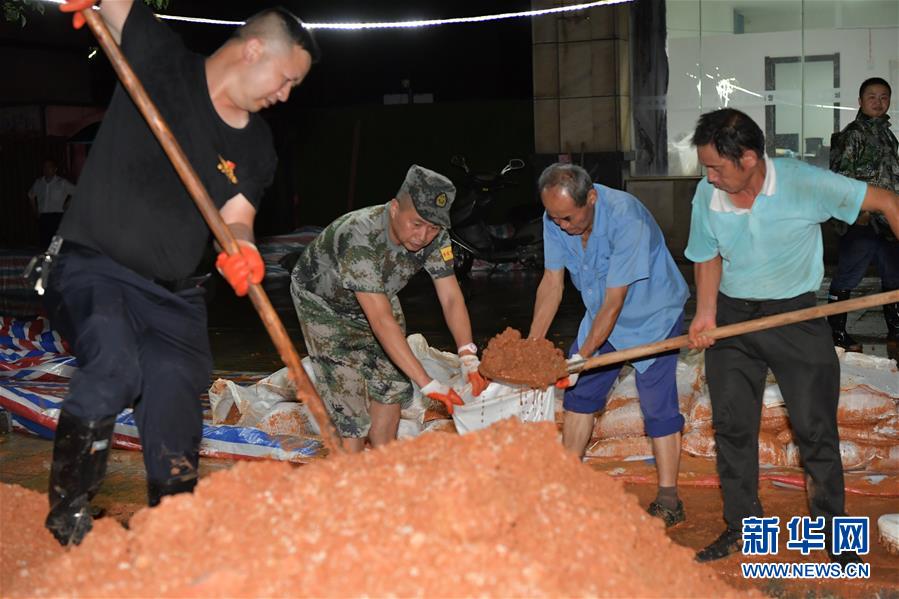 7月11日,在江西省庐山市内,当地干部群众正在连夜奋战,用沙袋构筑子堤。 受连续降雨及长江来水共同影响,鄱阳湖水位持续快速上涨。7月11日21时,鄱阳湖星子站水位22.48米,逼近22.52米的历史最高水位。在江西省庐山市内,当地干部群众连夜奋战,在城防堤内构筑2.5公里长的子堤,进一步做好防汛工作。 新华社记者 彭昭之 摄