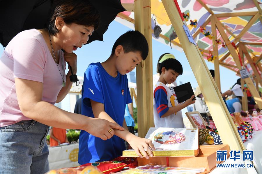 7月30日,在陕西省妇女儿童活动中心,顾客在“巧娘和她们的市集”上挑选手工艺产品。 新华社记者 李一博 摄