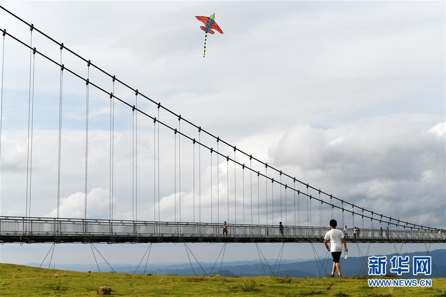 8月8日,游客在贵州省龙里油画大草原旅游观光。 近日,贵州省黔南布依族苗族自治州龙里县境内气候宜人,龙里油画大草原、“龙门镇”武侠文化主题景区等景点吸引众多游客前来观光旅游。 新华社记者 杨文斌 摄