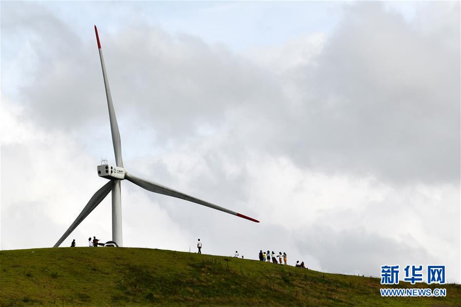 8月8日,游客在贵州省龙里油画大草原旅游观光。 近日,贵州省黔南布依族苗族自治州龙里县境内气候宜人,龙里油画大草原、“龙门镇”武侠文化主题景区等景点吸引众多游客前来观光旅游。 新华社记者 杨文斌 摄