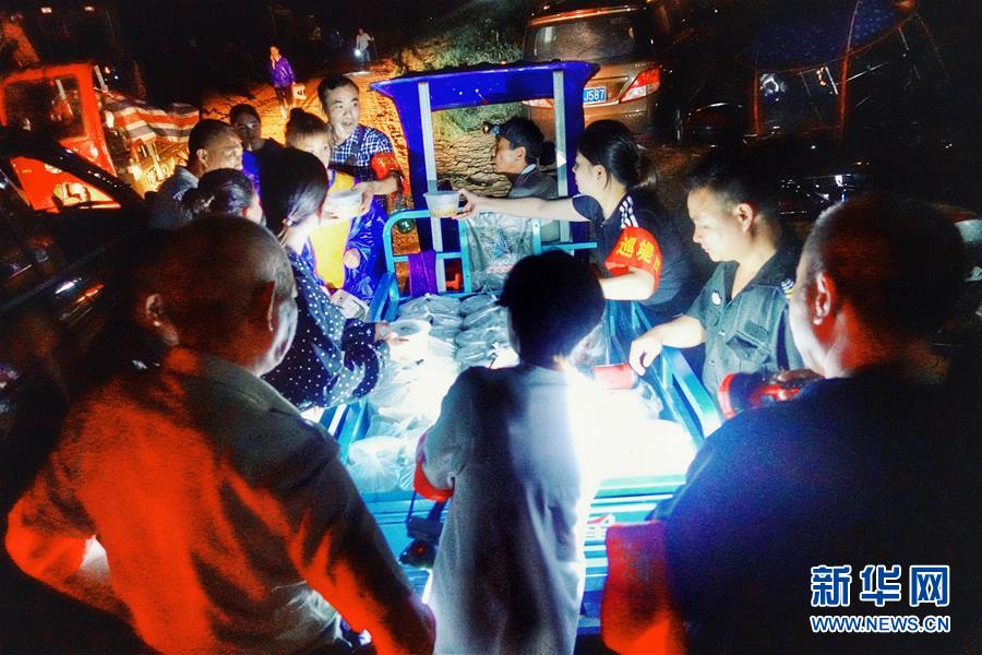 在湖南省常德市津市市,群众自发带着米粉慰问在防洪大堤上值守的工作人员(7月8日摄)。 新华社发