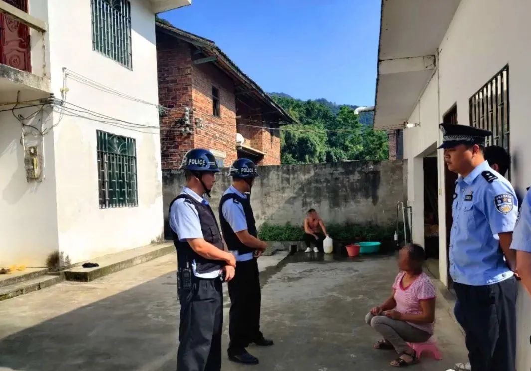 民警现场了解得知:男子是沙埔镇的韦某,他因为与前妻之间的家庭琐事矛盾问题,当天7时许,携带这壶汽油来到前妻家,把一半汽油浇到自己身上,扬言要自焚。韦某情绪激动,没人敢靠近他。经现场商议决定:由一组民警维持现场秩序,防止围观村民过度靠近受到伤害;另一组民警一边联系韦某家属前来现场协助化解矛盾,一边和村干部一起劝导韦某。