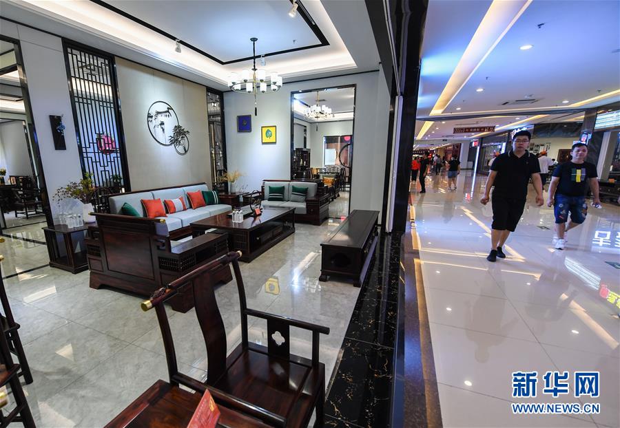 9月8日,客商在花园红木家具城市场内观看、选购家具。该家具城市场总面积50万平方米,有2000多个品牌入驻,是花园村最主要的红木家具交易市场。新华社记者 徐昱 摄
