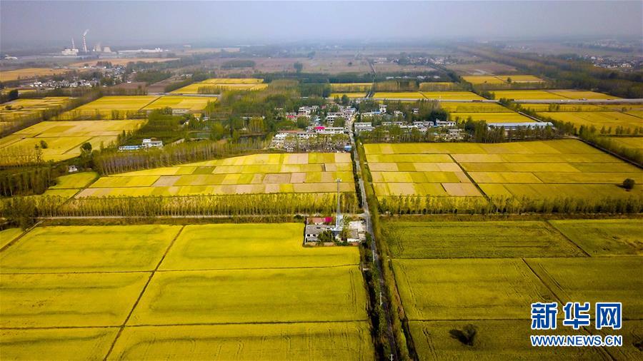 10月21日,在枣庄市台儿庄区邳庄镇,大片水稻逐渐成熟,田野一片金黄(无人机照片)。 金秋时节,有着运河古城、江北水乡美誉的山东省枣庄市台儿庄区2万余亩水稻,进入成熟收获期,田野一片金黄,稻农开始忙碌收割水稻,呈现出美丽的田园风光。 新华社记者郭绪雷摄