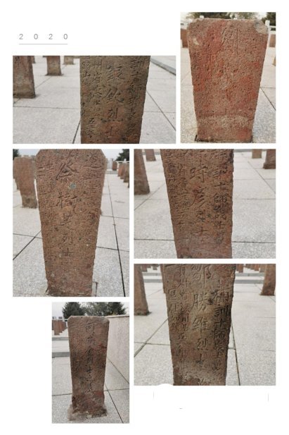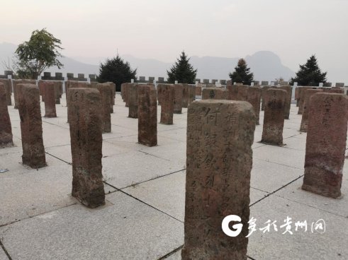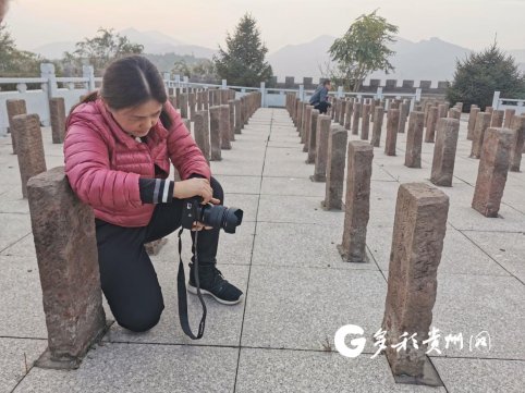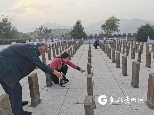 夕阳下的碑林更显肃穆 这些都是烈士原来老墓前的墓碑,原样迁过来后,统一安放在烈士纪念碑的后面。由于年代久远,要看清低矮墓碑上的字,必须要蹲下身来从各个角度仔细辨认。 只要看到有“贵州”两字,张林都会立即蹲下来仔细辨认,并拿起手中的相机寻找光线和角度进行拍摄。