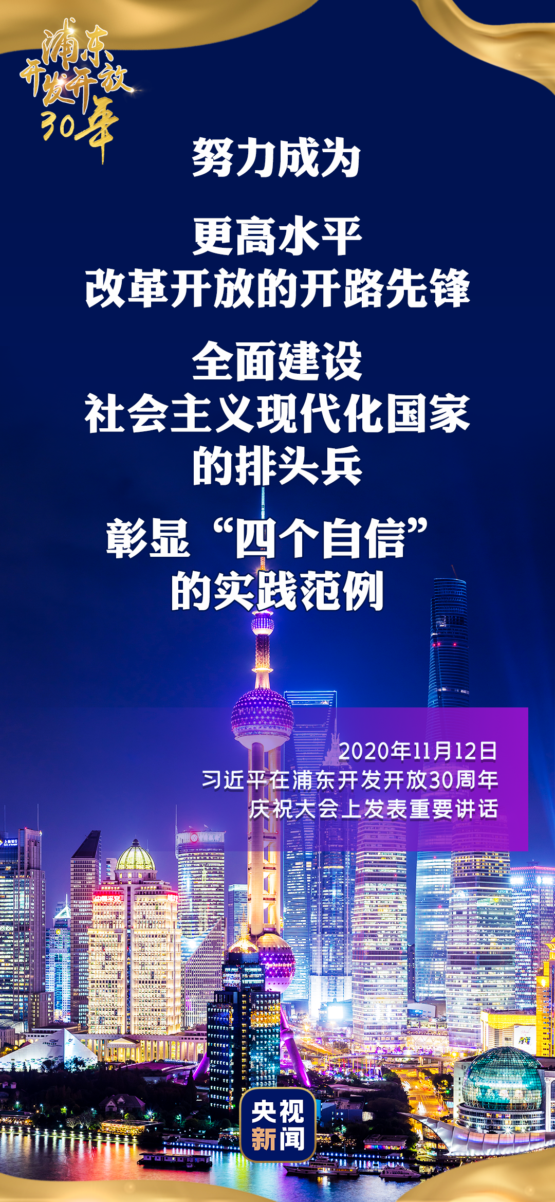 浦东开发开放30周年庆祝大会12日上午在上海市举行。中共中央总书记、国家主席、中央军委主席习近平在会上发表重要讲话。习近平强调,浦东要努力成为更高水平改革开放的开路先锋、全面建设社会主义现代化国家的排头兵、彰显“四个自信”的实践范例,更好向世界展示中国理念、中国精神、中国道路。而立之年的浦东,未来怎么干?看图↓