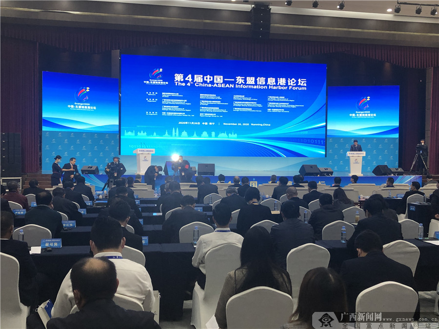 第4届中国-东盟信息港论坛主论坛现场。广西新闻网记者 吴婷婷摄 第4届中国-东盟信息港论坛与会嘉宾。广西新闻网记者 吴婷婷摄 广西新闻网南宁11月26日讯(记者 吴婷婷)11月26日,第4届中国-东盟信息港论坛在南宁举行。本届论坛以“数联东盟 智创未来”为主题。为积极应对全球疫情,论坛采取“线上+线下”相结合的形式举办,无法到现场参会的嘉宾通过线上网络平台致辞、演讲、参会。 在主论坛上,中国国家工业和信息化部副部长刘烈宏通过视频致辞,中国国家互联网信息办公室国际合作局局长祁小夏、中国国家发展和改革委员会创新和高技术发展司副司长孙伟出席并致辞。印尼通信与信息技术部部长Johnny Gerald Plate(约翰尼·杰拉得·布拉特)、老挝邮政通讯部部长H.E Dr. Thansamay KOMMASITH(坦沙迈·贡玛西)、马来西亚通信与多媒体部部长H.E. Dato' Saifuddin Abdullah(赛夫丁·阿卜杜拉)、缅甸交通运输和通信部部长U Thant Sin Maung(丹欣貌)、新加坡通讯及新闻部长S Iswaran(易华仁)、越南信息和通信部副部长NGUYEN HUY DUNG(阮辉勇)、柬埔寨邮电通讯部国务秘书SOK PUTHYVUTH(索布提武)等部长级重要嘉宾线上出席论坛并视频致辞。