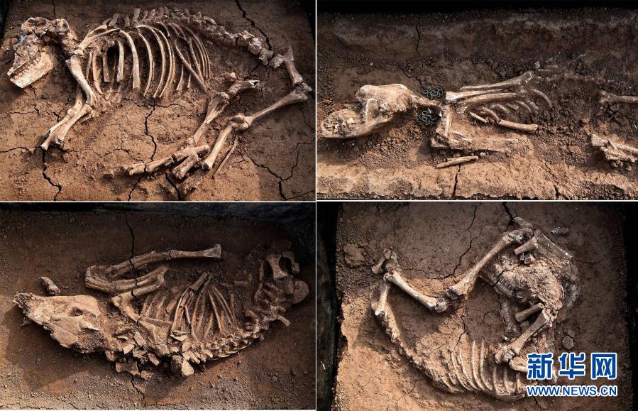 这是河南洛阳徐阳墓地标号为M15的墓葬周边祭祀遗存内出土的动物遗骸(拼版照片,11月27日摄)。