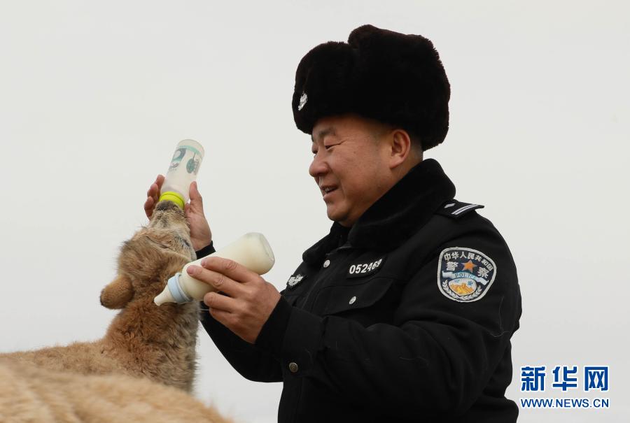 12月7日,可可西里索南达杰保护站站长赵新录在给藏羚羊幼仔喂奶。 位于青藏高原腹地的世界自然遗产地可可西里,平均海拔超过4600米,野生动物种类繁多,被誉为“动物天堂”。为加大对野生动物的保护力度,可可西里索南达杰保护站于2000年设立了野生动物救助中心。自野生动物救助中心运行以来,先后救护、喂养、治疗藏羚羊、斑头雁等各类野生动物300余只。目前,13只藏羚羊、2只大鵟、1只黑羊、1只藏原羚在救助中心生活,等它们恢复健康、符合放生条件时,将被重新放回自然。 新华社记者 王艳 摄