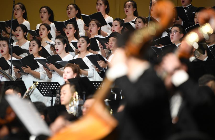 12月26日,兰州音乐厅合唱团在交响音乐会《敦煌·慈悲颂》上演出。