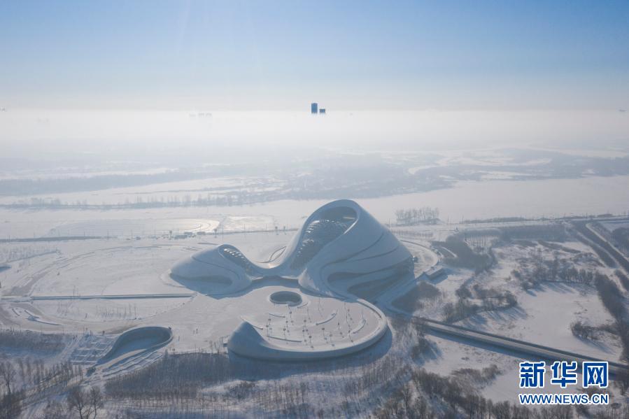 1月22日拍摄的哈尔滨大剧院(无人机照片)。 近日,哈尔滨出现新冠肺炎疫情,哈尔滨的冰雪大世界、太阳岛雪博会、哈尔滨大剧院、哈尔滨极地馆等景区场所陆续发布闭园、闭馆通知,宣布暂停开放。 新华社记者 谢剑飞 摄