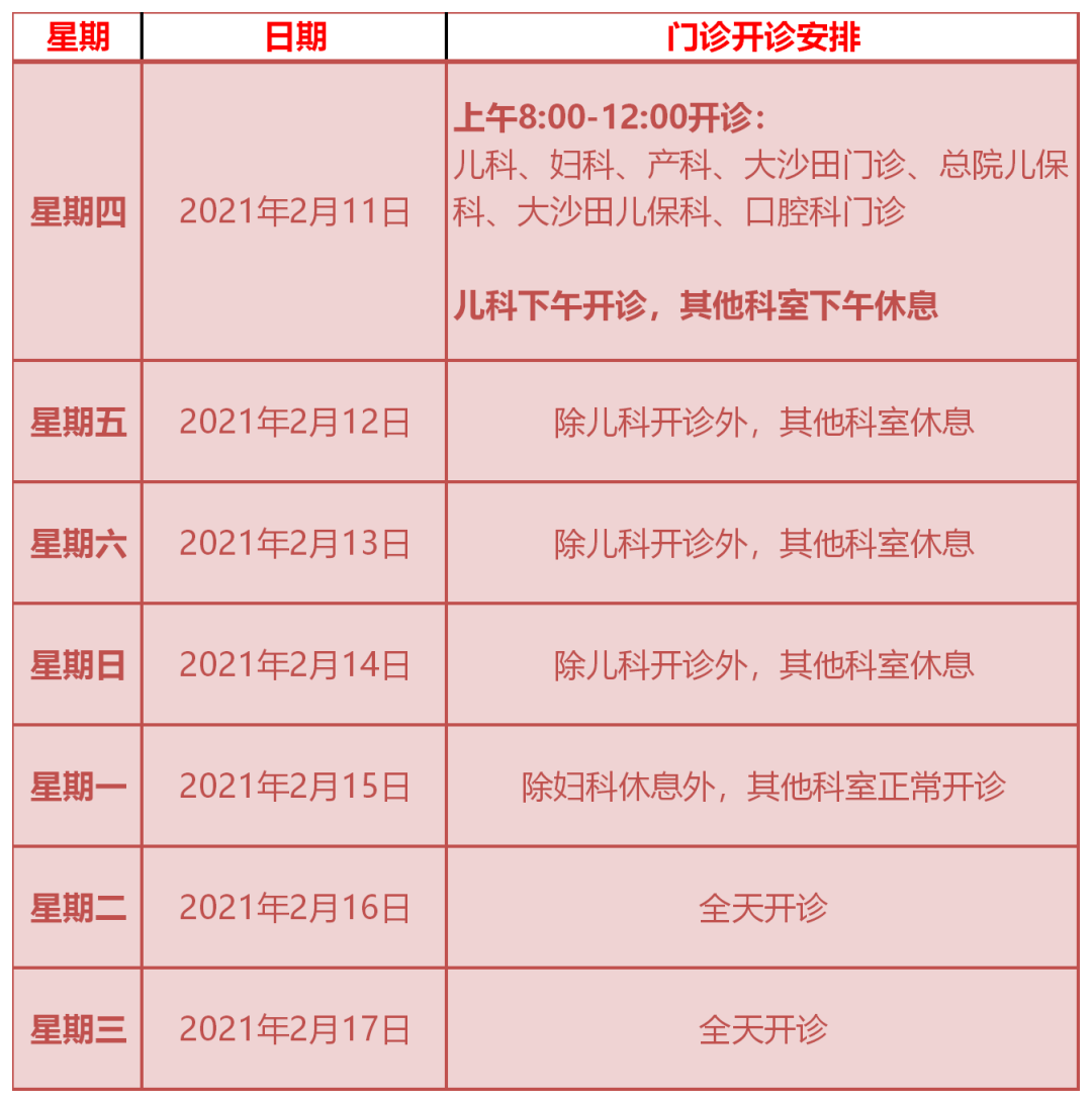 备注:放假期间,门急诊24小时接诊,急诊电话0771-4713154