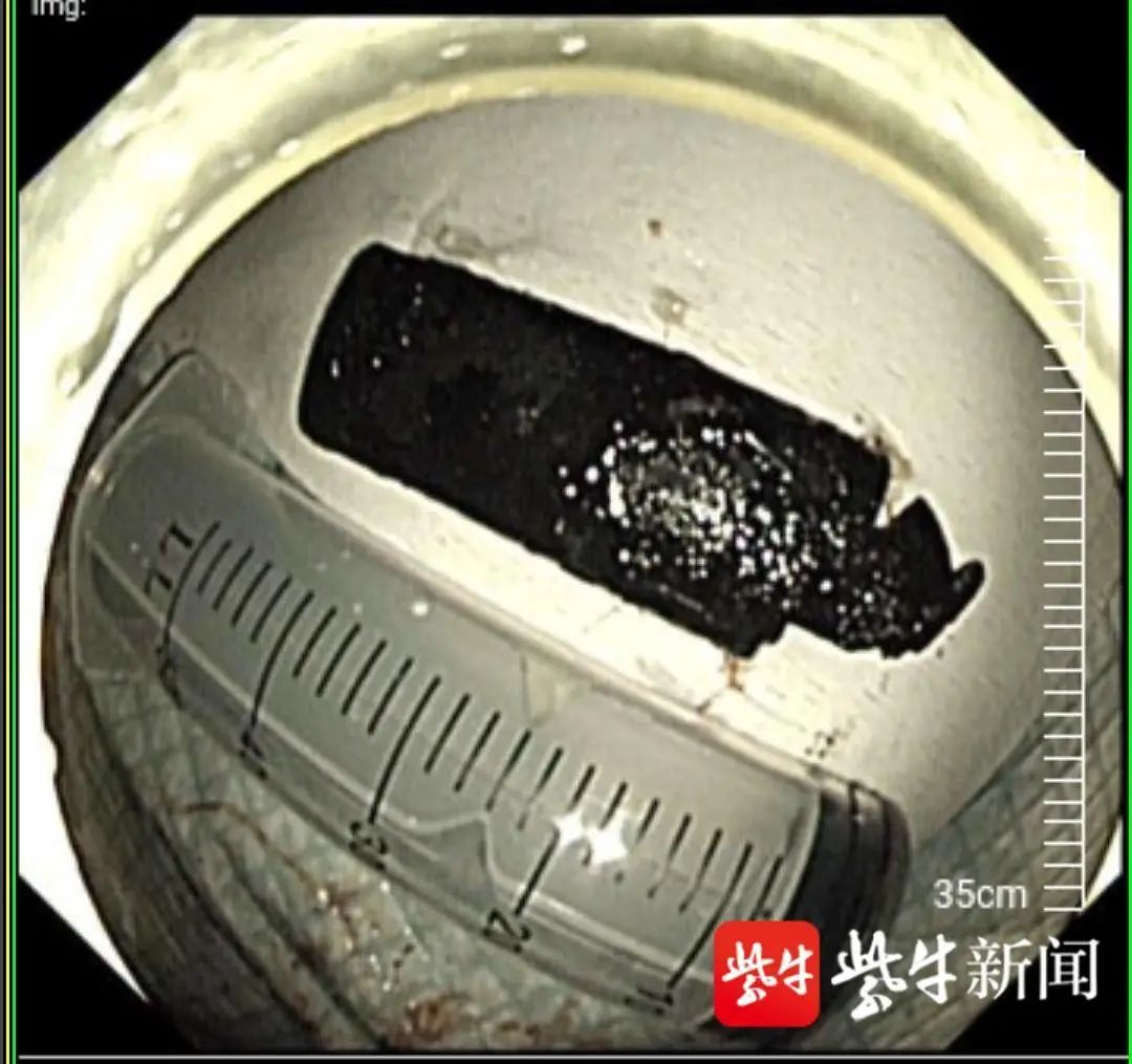可是最近 她接连出现了胃疼、恶心等症状 感觉胃里有异物感 这才意识到可能跟十多年前的打火机有关 于是便到常州二院就诊 这一查,把医生都给惊呆了: 打火机还真“藏”在胃里 十多年后才“重见天日” 都被腐蚀变形成黑色了!