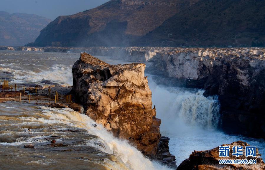 2月23日拍摄的重现磅礴之势的壶口瀑布。近日,随着气温回暖,黄河壶口段冰凌消融,壶口瀑布再现往日奔腾咆哮、一泻千里壮观奇景。新华社记者陶明摄