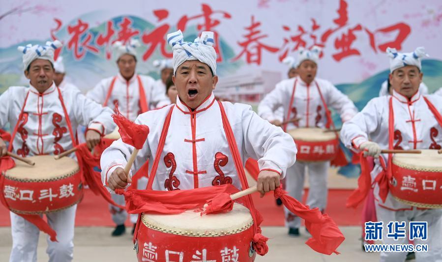2月24日,民间艺人在陕西壶口瀑布景区为游客表演壶口斗鼓。 从2月24日起,陕西壶口瀑布景区恢复对外开放。随着气温回升,黄河上游冰雪消融,水量增大,壶口瀑布的主瀑布恢复了往日奔腾咆哮的气势,黄河之水奔腾而下,形成壮观瀑布群。 临近元宵佳节,为丰富游客的旅游体验,陕西壶口瀑布景区还准备了猜灯谜、品汤圆、游美景、全时段精彩演出等活动,为远道而来的游客送上节日温暖。 新华社记者 陶明 摄