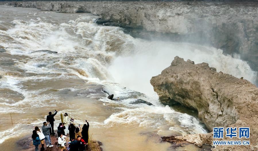 2月24日,游人在陕西壶口瀑布景区游览(无人机照片)。 从2月24日起,陕西壶口瀑布景区恢复对外开放。随着气温回升,黄河上游冰雪消融,水量增大,壶口瀑布的主瀑布恢复了往日奔腾咆哮的气势,黄河之水奔腾而下,形成壮观瀑布群。 临近元宵佳节,为丰富游客的旅游体验,陕西壶口瀑布景区还准备了猜灯谜、品汤圆、游美景、全时段精彩演出等活动,为远道而来的游客送上节日温暖。 新华社记者 陶明 摄