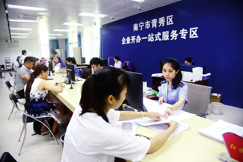 青秀区多措并举提升政务服务软环境。图为青秀区企业开办一站式服务专区提高办证效率,为企业节约时间成本。记者刘增璇摄