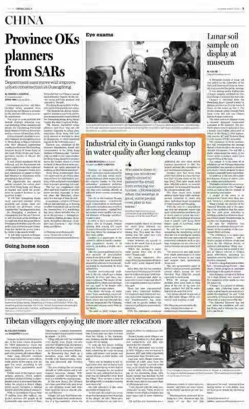 《中国日报》报道《广西柳州:从酸雨之都到地表水质排名全国第一的背后故事》 |