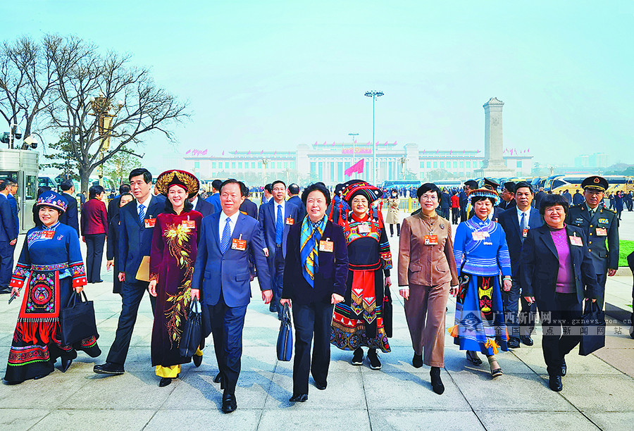 3月4日,全国政协十三届四次会议在北京人民大会堂开幕。这是参加会议的住桂全国政协委员步入会场。 肖顺平 摄 |