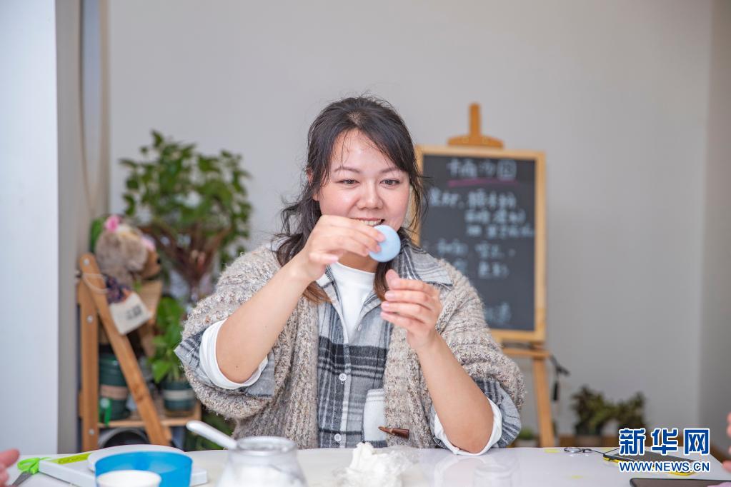3月26日,在重庆市渝北区,欧阳勤芸在工作室向学员讲解做造型馒头需要的面团大小。新华社记者 黄伟 摄