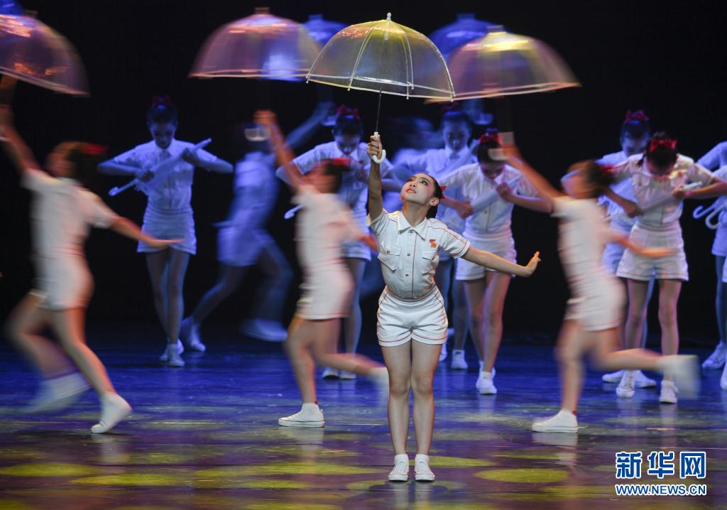 5月1日,在福州大戏院,厦门市湖里区青少年宫的小演员在表演舞蹈《雨中曲》。 当晚,第九届福建省原创少儿舞蹈大赛决赛在福建省福州市举行。本届大赛由福建省文联、福建省舞蹈家协会主办,来自福建各地近800名小舞者参加,32个入围决赛的节目具有鲜明的福建地域特色和时代精神。 新华社记者 宋为伟 摄