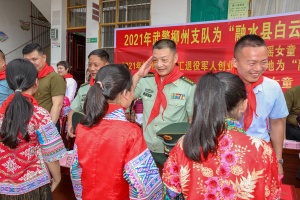 广西新闻网融水6月1日讯(通讯员 何科 张亚博 李灿明 实习生 涂钟予)5月31日下午,武警柳州支队官兵来到广西融水苗族自治县白云乡中心小学,联合广西食品安全协会、柳州市军英汇餐饮管理有限公司等单位给“武警红瑶春蕾女童班”送六一儿童节特色礼包。