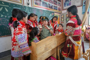 在简短的慰问仪式上,“武警红瑶春蕾女童班”学生接过捐款、电脑、复印机、书籍与服装等慰问品,个个喜上眉梢。大礼包除了武警官兵们与师生进行学史增信活动外,还有军训、食品安全课等。