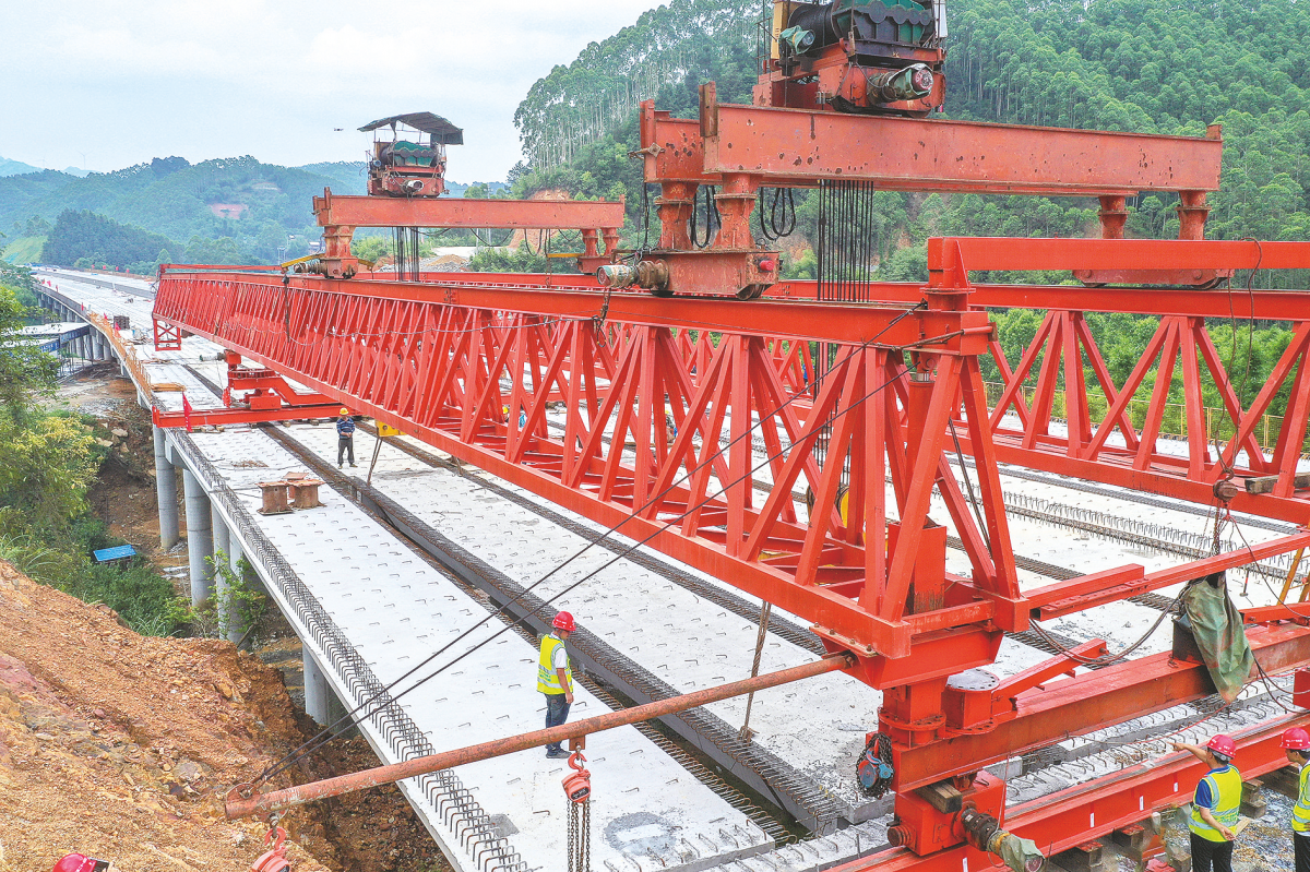 随着最后一片箱梁精准架设到位,六宾高速林屋大桥全幅贯通。(黄维业摄)