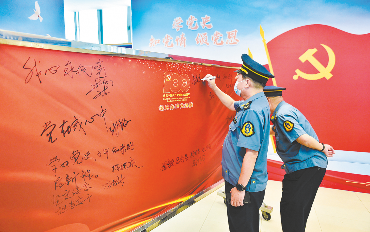 党员干部们在“党员心声留言板”上写下了自己参加此次活动的心得体会,也写出了自己对党的庄严承诺。 (潘浩摄)