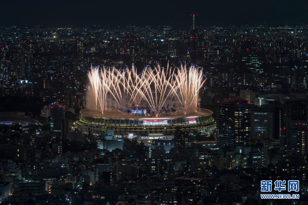 这是7月23日拍摄的东京奥运会开幕式的焰火表演。新华社记者 杜潇逸 摄
