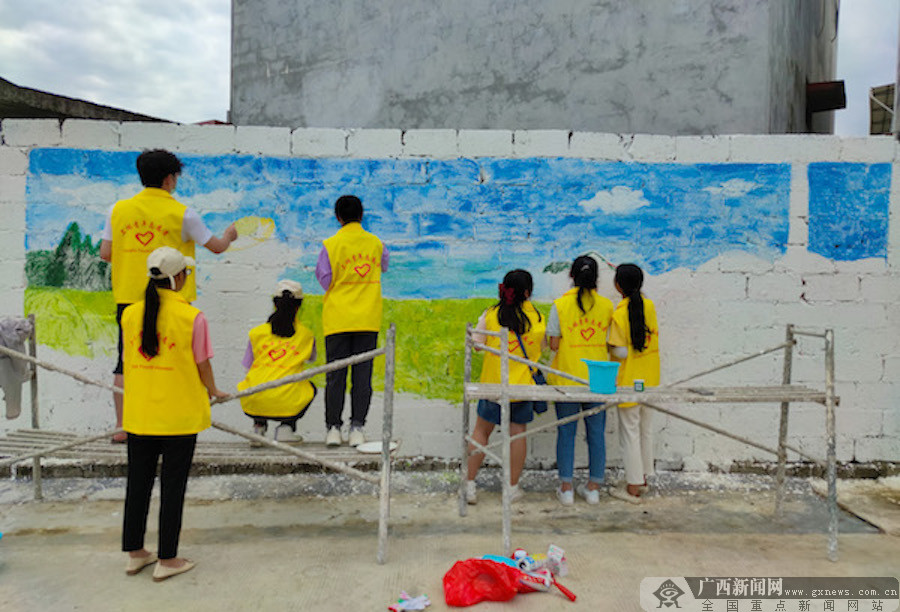 上林:大学生志愿者 “青春墙绘”为美丽乡村添彩 |