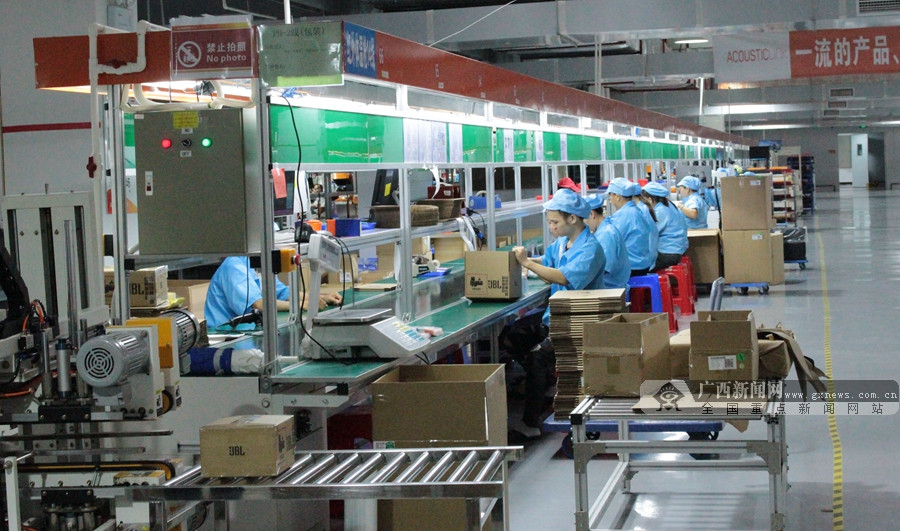 在三诺跨境电子产业示范园包装流水线,工人们在进行包装工作。广西新闻网记者 陶洁 摄 走进三诺跨境电子产业示范园,车间内整齐陈列各类生产设备,工人们在音响流水线前进行产品外包装工作,忙碌而有序。 崇左片区在全国率先打造首个中越“两国双园”项目,集聚发展跨境加工业,开辟中越跨境产业合作新途径,三诺跨境电子产业示范园是其中的重点项目之一。“我们在国内生产核心零部件,再发往越南工厂进行组装,在产业合作上与国外形成了良性互动。”广西三诺电子科技有限公司总经理谢晓表示,凭祥作为“走出去的窗口”,其区位优势为跨境电子信息产业链的发展提供更多机遇。