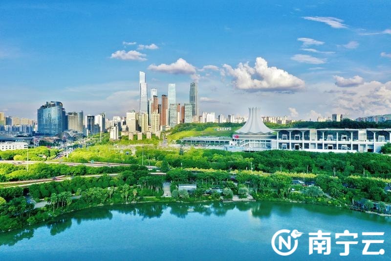 我市自觉践行“绿水青山就是金山银山”理念,深入推进“美丽南宁”建设,蓝天白云常伴身边,生态宜居城市名片更加亮丽,持续增进人民群众的生态福祉。图为风景宜人的南宁国际会展中心一带。 记者潘浩摄 生态宜居品质巩固提升