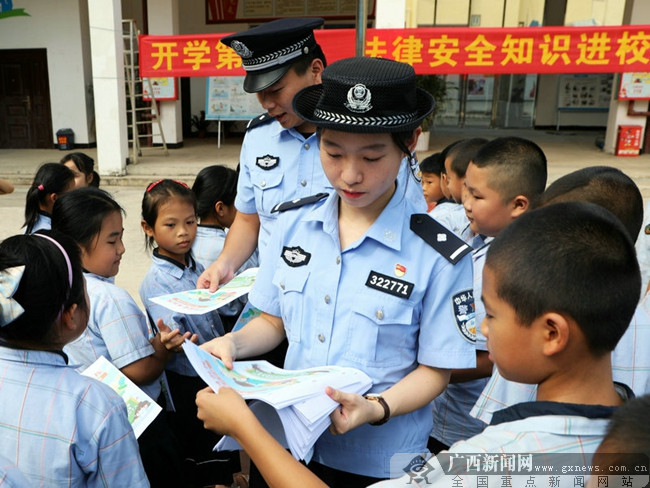 广西新闻网凭祥8月31日讯(通讯员 蔡铮 实习生 苏时榕)8月31日,开学伊始,广西出入境边防检查总站凭祥边境管理大队边境派出所民警走进辖区礼茶小学开展“法制安全教育进校园”活动,为师生们送上了珍贵的一份“开学大礼包”。