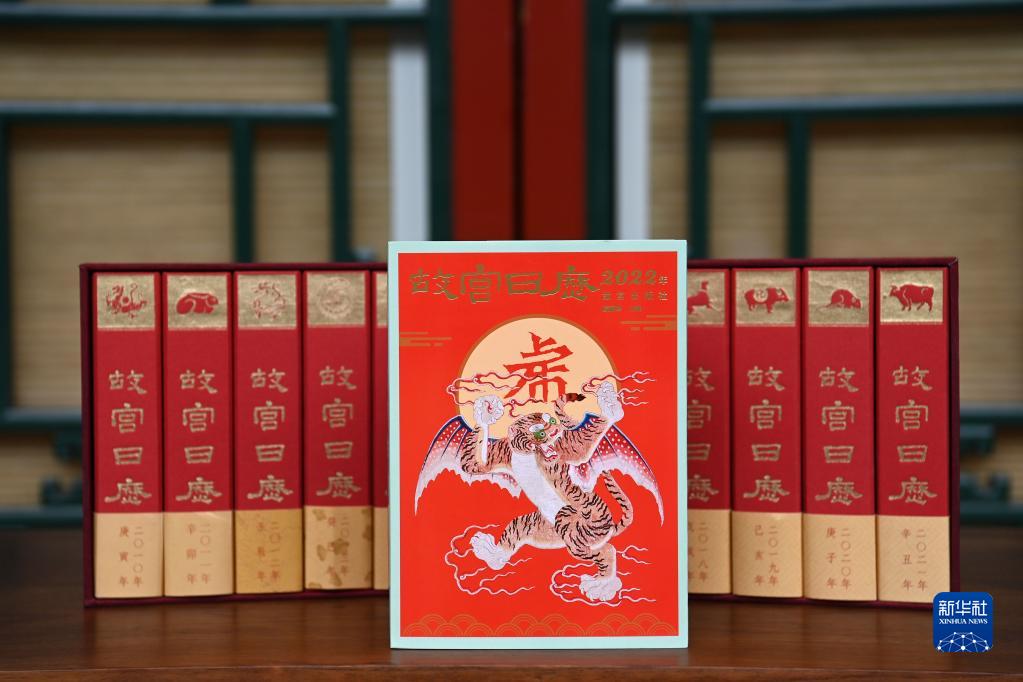 这是9月6日拍摄的2022年《故宫日历》(前)与历年的《故宫日历》。 当日,2022年《故宫日历》发布会在北京故宫博物院建福宫举行。2022年《故宫日历》以“吉虎迎新岁,山河庆升平”为主题,全书选取故宫馆藏的表现虎与武备、骑射、运动相关的文物藏品,从不同角度呈现了365件不同朝代、不同类型、不同材质的珍贵文物,分别展现了虎虎生威、吉虎迎瑞、虎啸丹青、冬运冰嬉等丰富内容。 新华社记者 金良快 摄